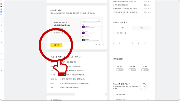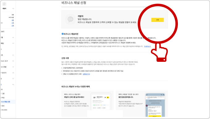2. 비즈니스 채널 - [신청하기] 버튼을 클릭해주세요.
