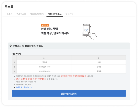 주소록은 엑셀 업/다운로드를 제공합니다.