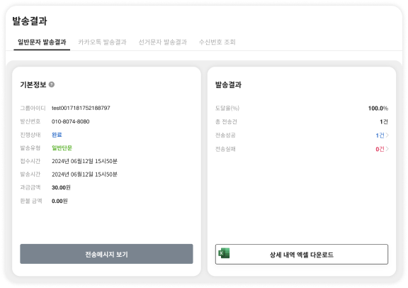 문자 발송 실패 시 사유를 확인할 수 있으며,