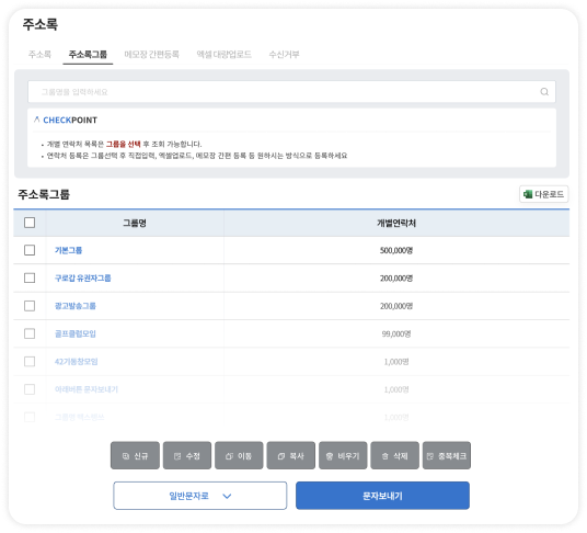 문자 수신 그룹을 주소록을 통해 관리할 수 있습니다.