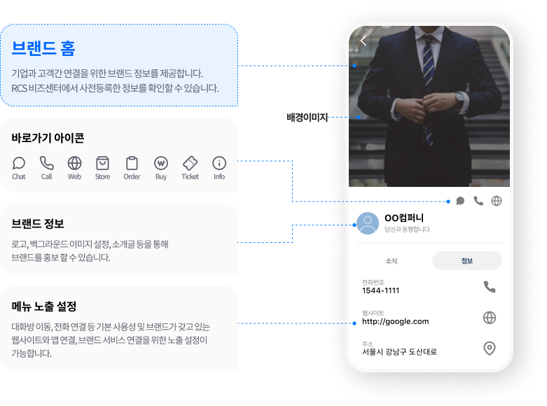 발송기업의 브랜드 정보와 함께 다양한 형태의 메시지를 전송할 수 있는 서비스입니다.