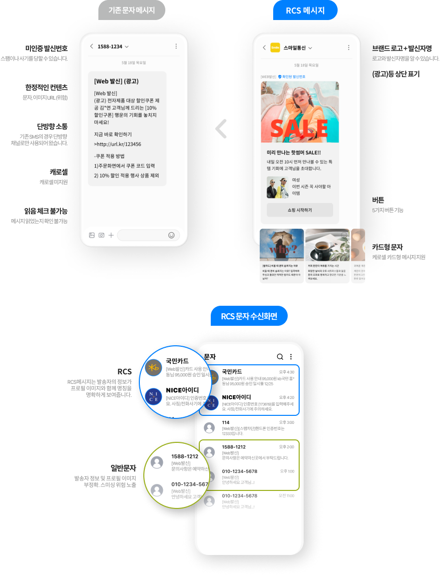 이동통신사의 새로운 문자메시지 서비스로 기존 문자메시지와